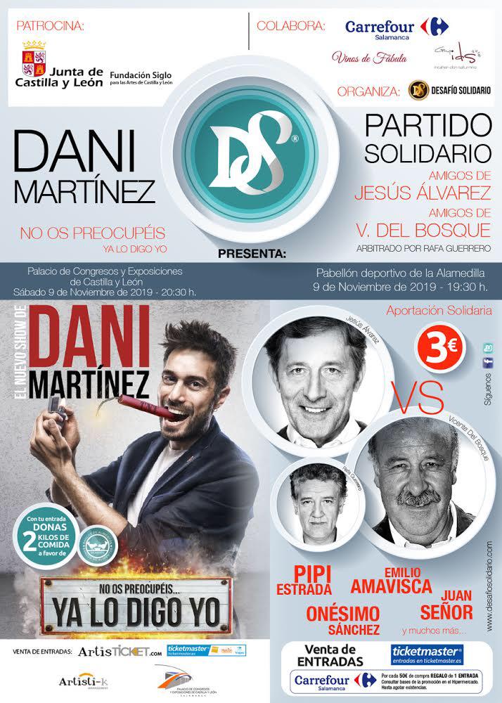 Ésa es la segunda y más importante de las vertientes de Desafío Solidario, la solidaridad, ya que lo recaudado servirá para convertirlo en comida que ir a destinada al Banco de Alimentos. Las entradas costarán 4 € y se podrán adquirir a través de la plataforma Ticketmaster.es aunque también se podrán conseguir mediante compras superiores a 50 € en el Centro Comercial Carrefour de Salamanca porque Carrefour regalará una entrada por cada una de las compras que superen esa cuantía hasta agotarse las localidades disponibles. En ese encuentro participarán personajes tan populares como los ex futbolistas Juan Señor, Emilio Amavisca o Onésimo Sánchez; y junto a ellos nombres propios con mayúsculas de la cultura y la televisión como Pipi Estrada o Gonzalo Miró.